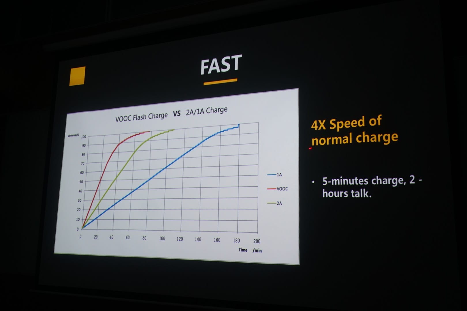 โดย OPPO Find 7 ที่เปิดตัวเมื่อเดือนมีนาคม 2014 เป็นสมาร์ทโฟนรุ่นแรกของออปโปที่ใช้เทคโนโลยี VOOC Flash Charge ซึ่งประโยชน์ของเทคโนโลยีตัวนี้คือชาร์จเร็วขึ้น 4 เท่า คือชาร์จแค่ 5 นาที ก็สามารถใช้งานโทรศัพท์ได้นาน 5 ชั่วโมงแล้ว (ตามตัวเลขที่ OPPO เคลมมานะ) สรุป VOOC Flash Charge อยู่ในตลาดมาแล้ว 4 ปี มีผู้ใช้เทคโนโลยีนี้ทั่วโลก 90 ล้านคน