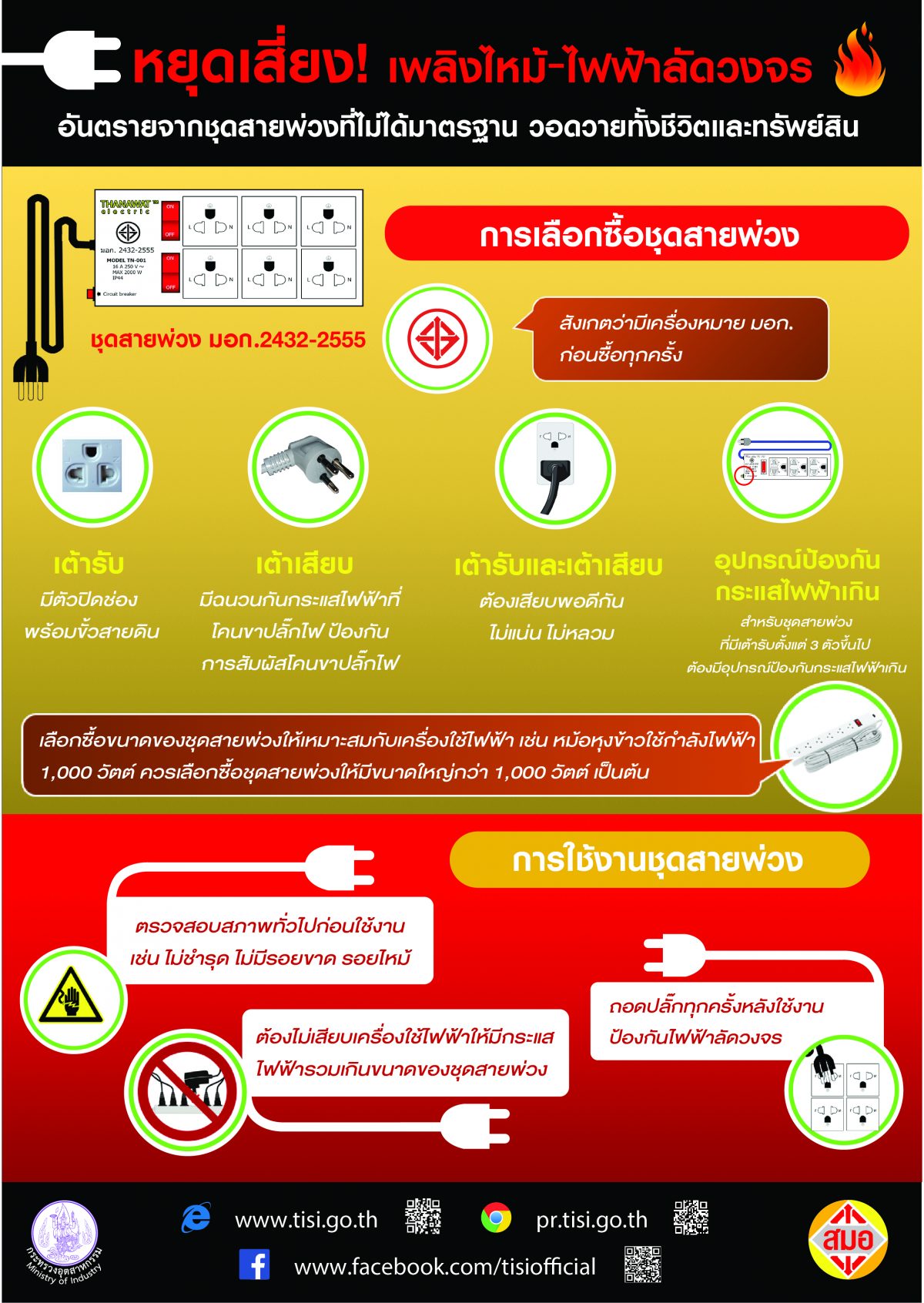 - ถ้ามีปลั้กรางมีเกิน 3 เต้า ต้องมีตัวตัดกระแสไฟฟ้าแบบ Thermal cutoff เพื่อป้องกันกระแสเกินจนร้อนจัดแล้วลุกไหม้