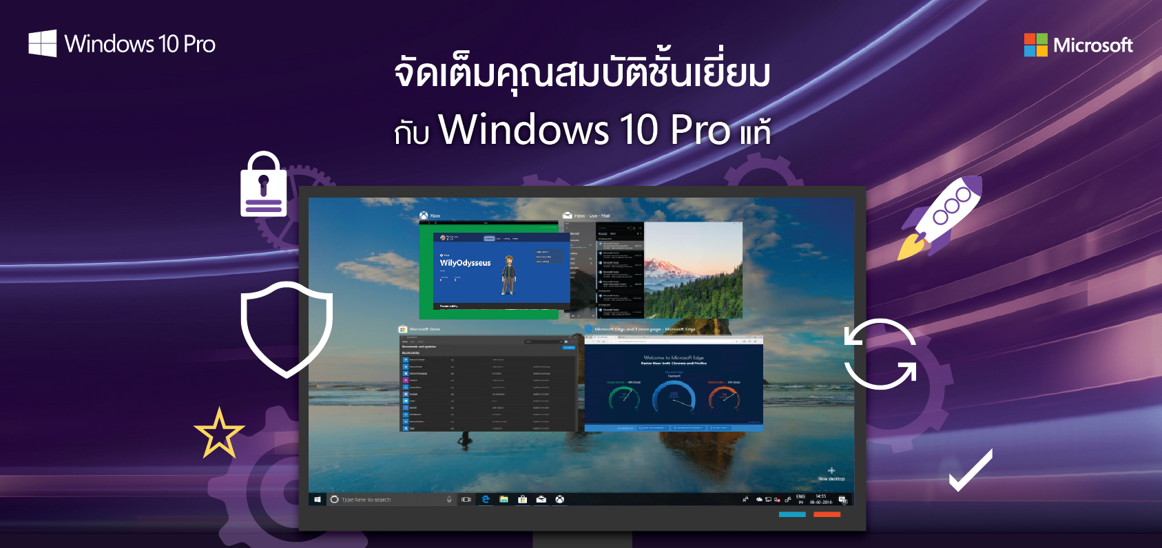 Windows 10 Pro ก็ยังเป็นวินโดวส์ ระบบปฏิบัติการที่คนส่วนใหญ่ในโลกใช้และหลงรัก แต่ใส่เทคโนโลยีล่าสุดเพื่อให้ทำงานได้ดีขึ้น อย่างเทคโนโลยีที่ช่วยให้คุณเปิดเครื่องและเริ่มใช้งานได้อย่างรวดเร็ว หรือฟีเจอร์การรักษาความปลอดภัยในตัวที่มากกว่าเดิม เพื่อช่วยปกป้องคุณจากภัยคุกคามที่เป็นอันตราย