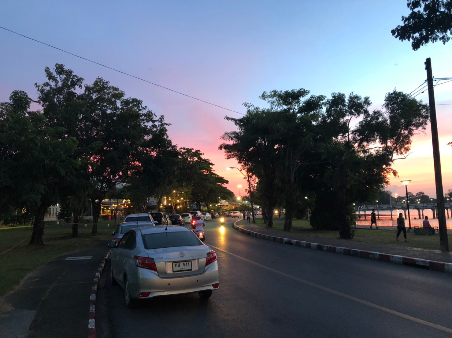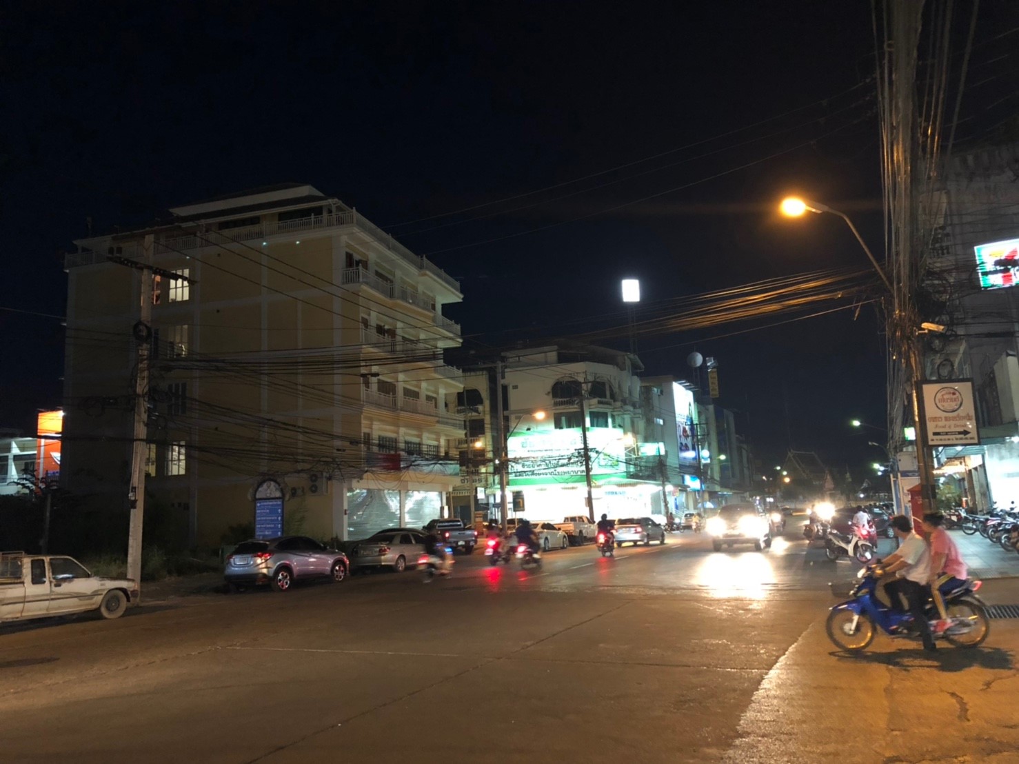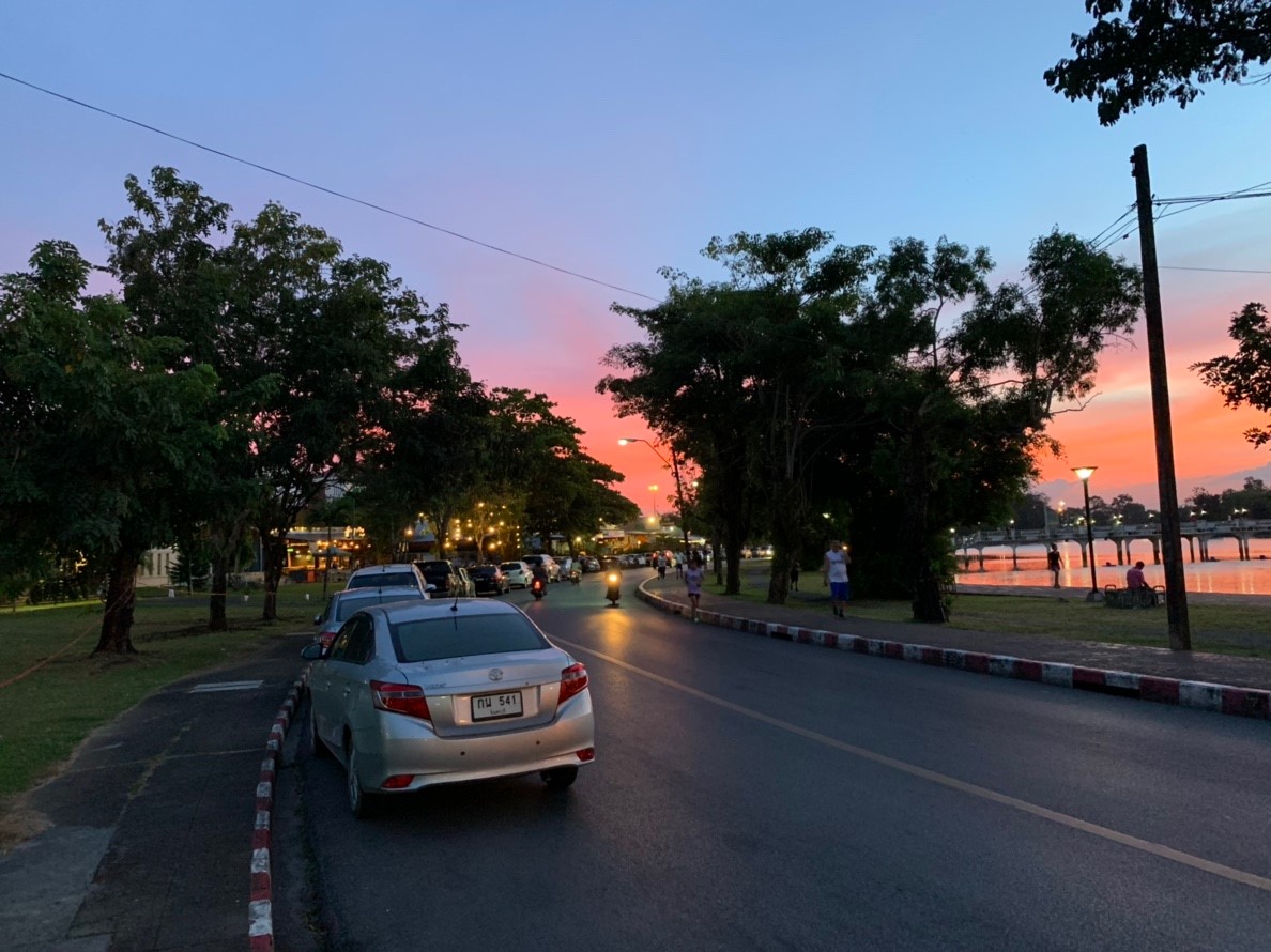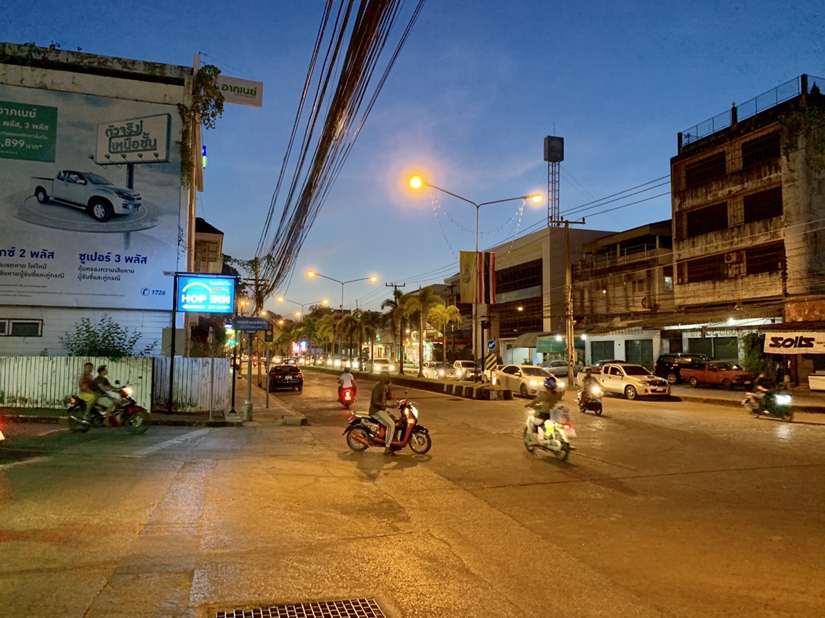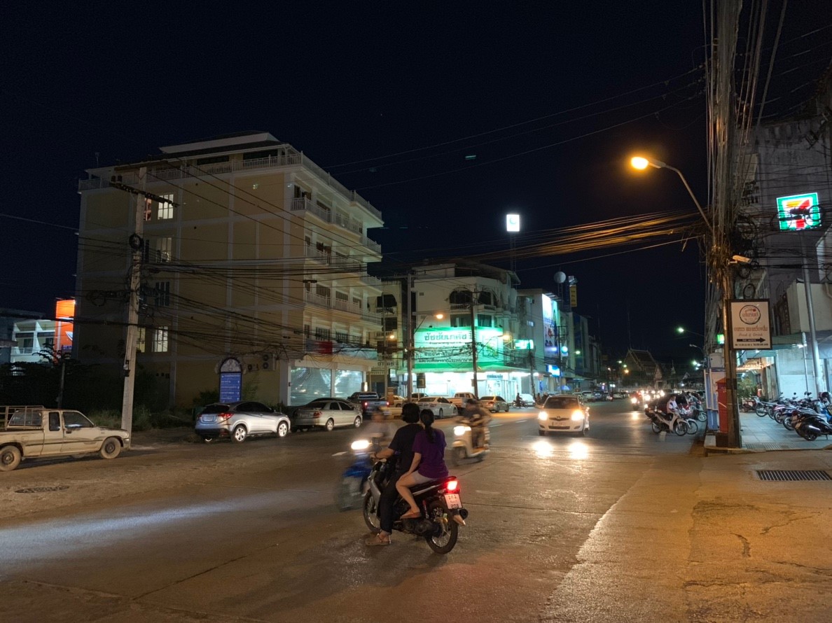 เมื่อเริ่มเข้าสู่ช่วงกลางคืน iPhone 8 Plus ก็ยังคงเก็บแสง, ความแม่นยำของสีได้ดีไม่แพ้ XS Max เลย ถึงแม้ว่าจะมีแสงแฟลร์ (Flare) อยู่บ้าง