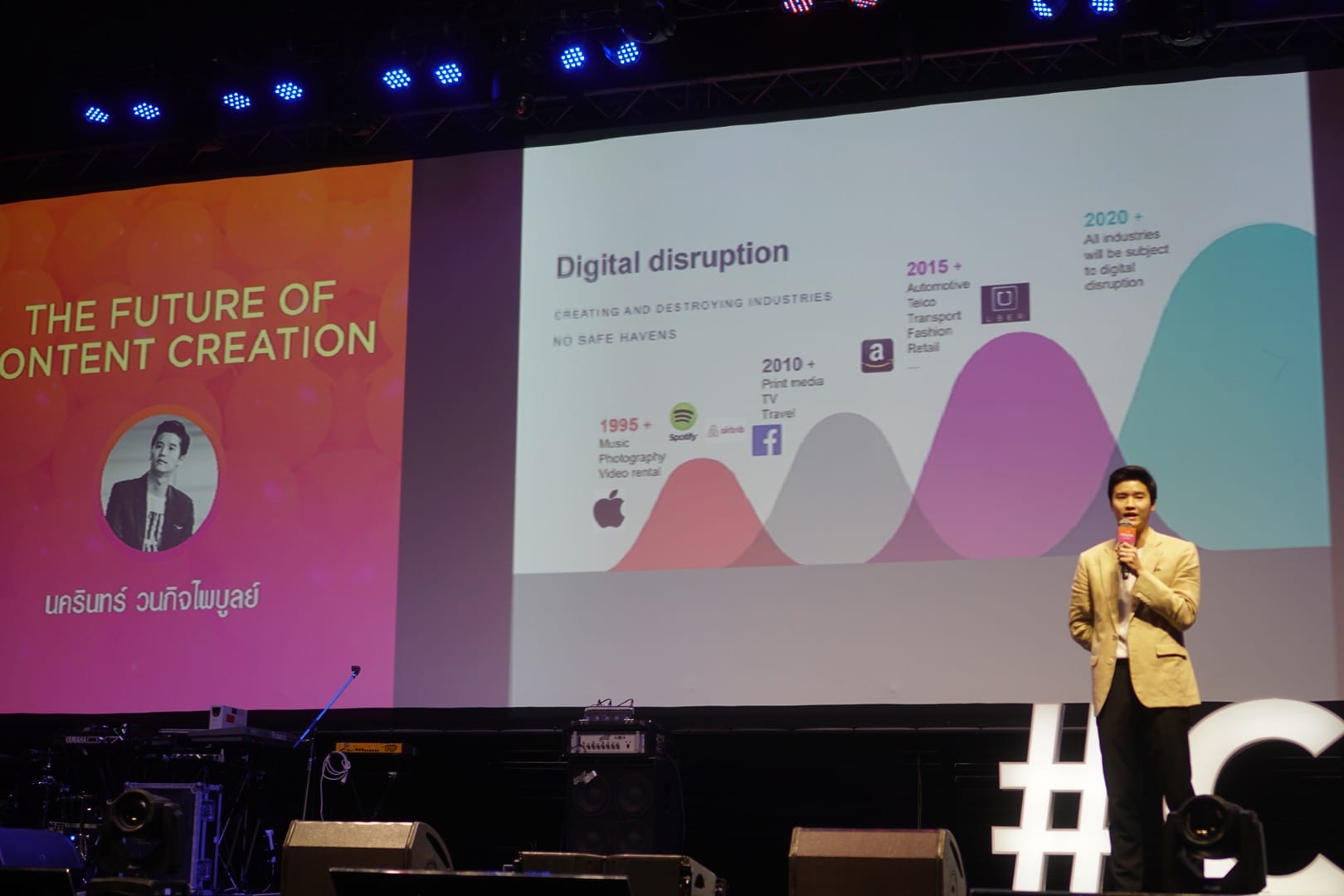 สิ่งที่มา Disrupt คือ Platform ซึ่งแพลทฟอร์มหมายถึงตัวกลางที่แลกเปลี่ยนคุณค่าระหว่างกัน เมื่อก่อนผู้ผลิตกับผู้บริโภคเนื้อหาแยกกันอย่างชัดเจน ผู้อ่านก็ไม่สามารถเป็นผู้ผลิตได้ง่ายนัก แต่ตอนนี้ทุกคนมีสิทธิ์เท่ากันหมด มีโอกาสแสดงตัวให้คนอื่นได้ไถผ่านอย่างรวดเร็วเหมือนกัน ทุกคนเป็นสื่อได้หมด