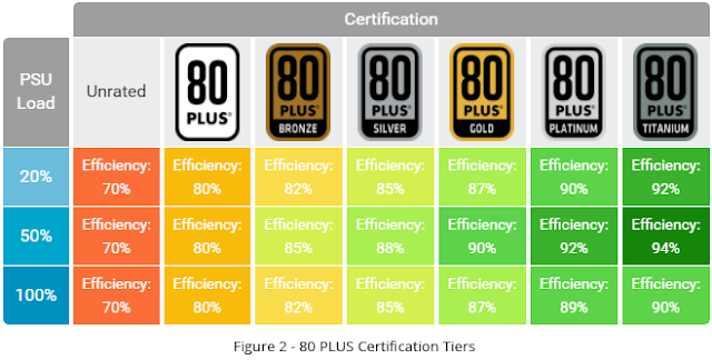 ต้องทำความเข้าใจกันก่อนว่า 80 Plus ไม่ใช่เป็นตัวบ่งบอกว่า PSU ตัวนั้นคือ PSU เทพ บางยี่ห้อเทพๆก็ไม่ได้ตรา 80 Plus (หลายๆคนมักเข้าใจผิดว่า 80 Plus คือการบ่งบอกว่า PSU เทพ) พูดกันภาษาชาวบ้านๆ มันก็เหมือนสติ๊กเกอร์ฉลากประหยัดเบอร์ 5 ที่ กฟผ.เอามาแปะบนเครื่องใช้ไฟฟ้านั่นแหละ ซึ่งใน PSU นั้นจะหมายถึงประสิทธิภาพในประหยัดพลังงานจากการแปลงไฟจากกระแสสลับ AC เป็นกระแสตรง DC ระหว่างรับเข้ากับจ่ายออกนั้นเกินกว่า 80% สมมุติง่ายๆ PSU รับไฟเข้ามา 250W และออกมาได้ 200W โดยอีก 50W สูญเสียกับความร้อน หากคำนวนโดยการ 250W ตั้งหารด้วย 200W จะเท่ากับ 0.8 เมื่อคิดเป็น % ด้วยการคูณด้วย 100 ก็จะเท่า 80% นั่นเอง นั่นหมายความว่า PSU ตัวนี้ให้ประสิทธิภาพในการจ่ายไฟขาออกถึง 80% โดยสุญเสียไปกับพลังงานความร้อนเพียง 50W จึงได้มาตรฐาน 80 Plus นั่นเองครับ