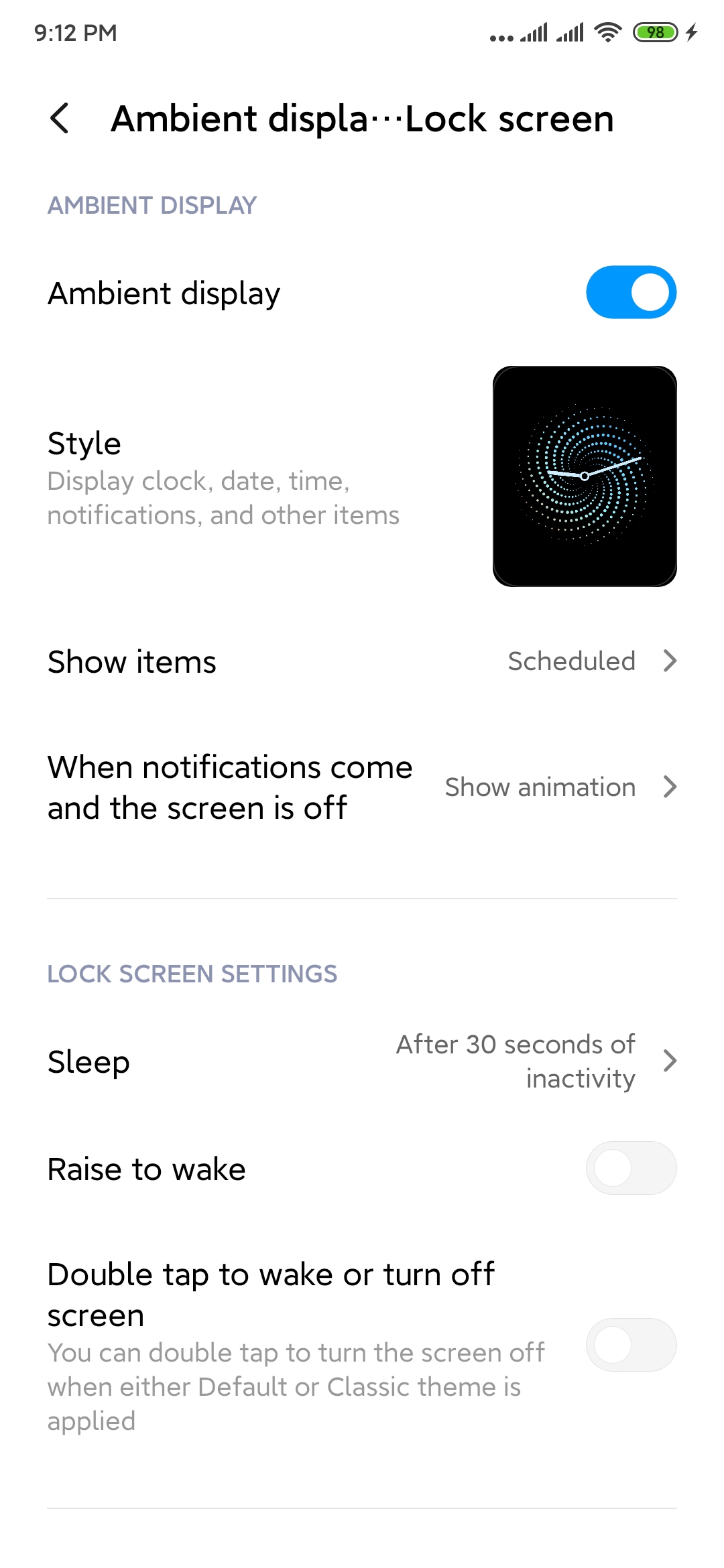 Ambient Display หรือ Always On Display ที่รู้จักกันมาสักพักแล้ว และมีอยู่บน MIUI 10 ด้วย แต่ใน MIUI 11 เราสามารถปรับแต่งอะไรได้หลากหลายมากขึ้น เช่น สิ่งที่เราต้องการให้แสดงผล และ ธีมนาฬิกาของ Ambient Display ที่ตั้งค่าได้หลากหลายมากขึ้น มีทั้งแบบ Animated, Analog, Digital, Signature และ Picture Background