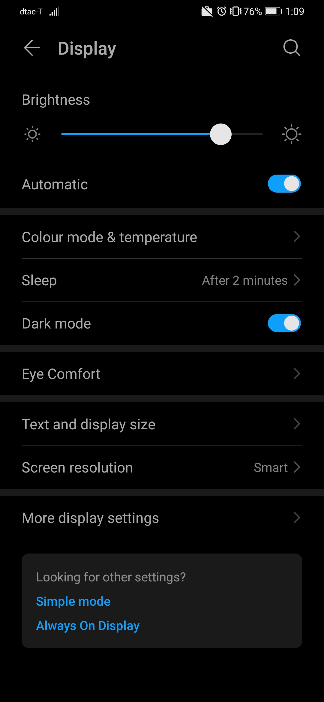 Dark Mode ที่ถูกเพิ่มเข้ามาตามพื้นฐานของ Android 10 จัดคอนทราสต์ให้เหมาะสมกับทุกแอป และสามารถเปิดใช้งานกับแอปอื่น ๆ ที่รองรับอีกด้วย (เช่นเดียวกันกับ Android10)