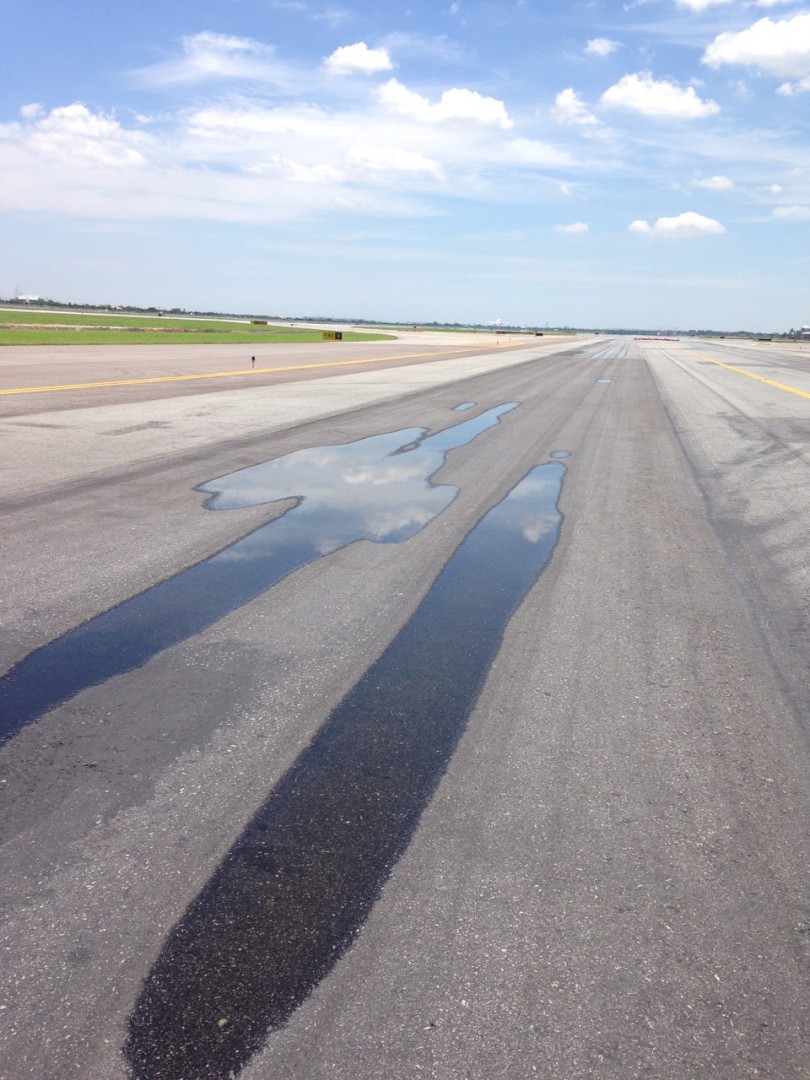 ถ้าสูตรผสม แอสฟัลท์ ที่ใช้ทำพื้นผิวมันเสื่อมสภาพเร็วจะเป็นด้วยการบดทับของล้อเครื่องบินหรือจะเป็นเพราะน้ำใต้ดินเอ่อล้นทำให้พื้นผิวที่บดอัดใต้ดินยุบตัว
