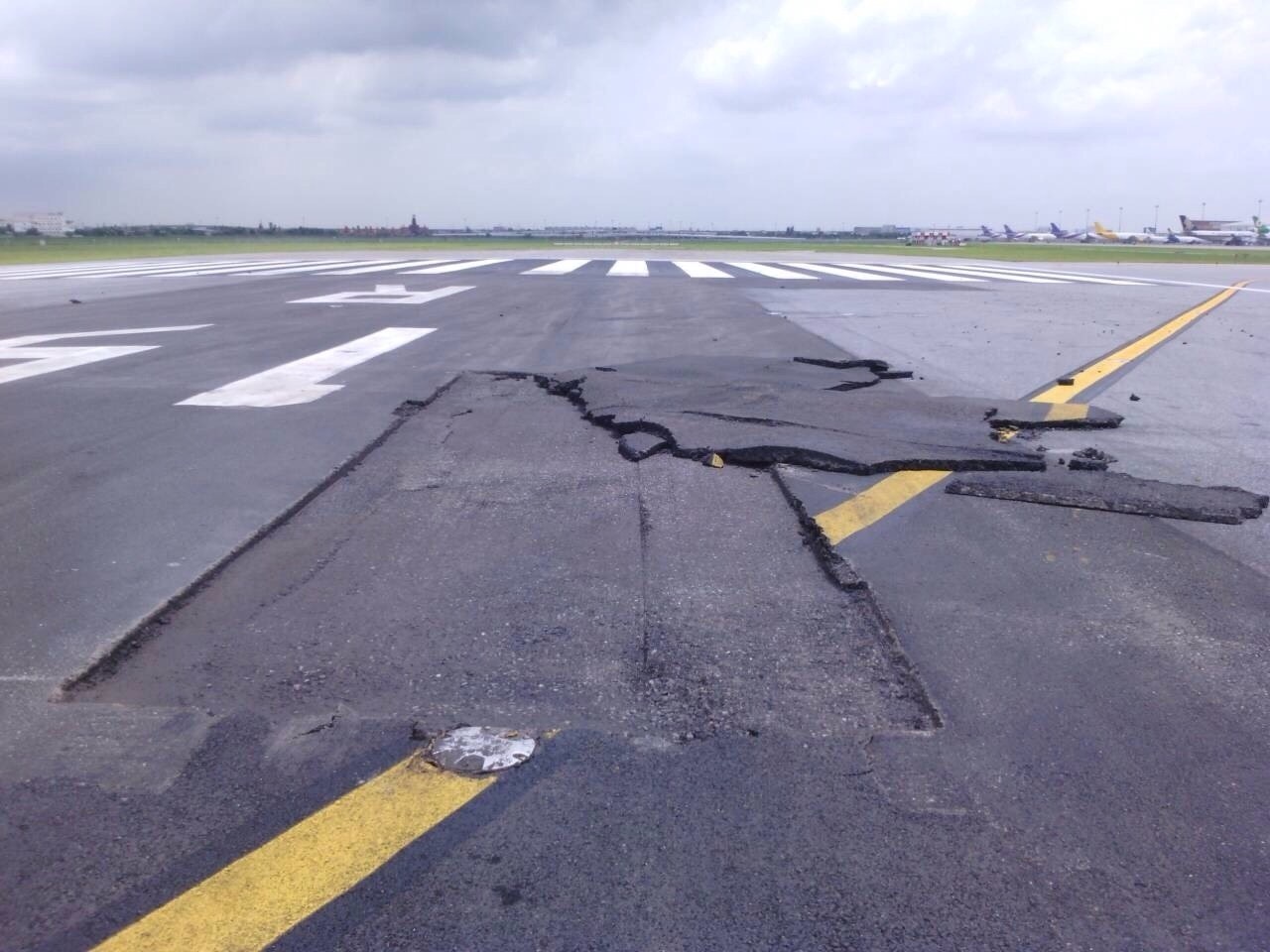 เรามีการทรุดตัวของทางขับที่แก้กันมาจนจะครบ ๑๐ปี แล้วก็ยังแก้ไม่จบ
