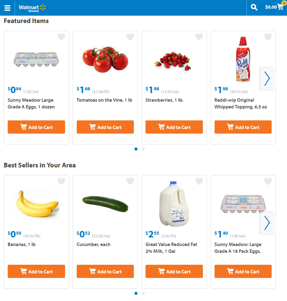 ในการสั่งนั้น จะสามารถสั่งเหมือนเราไปเดินอยู่ในห้างเลย มีของชำมากมายให้เลือกซื้อ ไม่ว่าจะเป็น พืช ผัก ผลไม้ ผลิตภัณฑ์เนื้อสัตว์ ผลิตภัณฑ์ที่ทำมาจากนม และอื่น ๆ อีกมากมาย โดยเข้าไปสั่งใน walmart.com/grocery โดยมีค่าธรรมเนียมในการส่งประมาณ 7-10 เหรียญสหรัฐ ซึ่งจะเป็นการจ่ายทางออนไลน์ ไม่ต้องจ่ายให้คนขับโดยตรง ซึ่งเมื่อสินค้าถูกส่งแล้ว ทาง Walmart ก็จะแจ้งให้เรารู้ว่ารถจากบริการไหนจะเป็นผู้มาส่ง