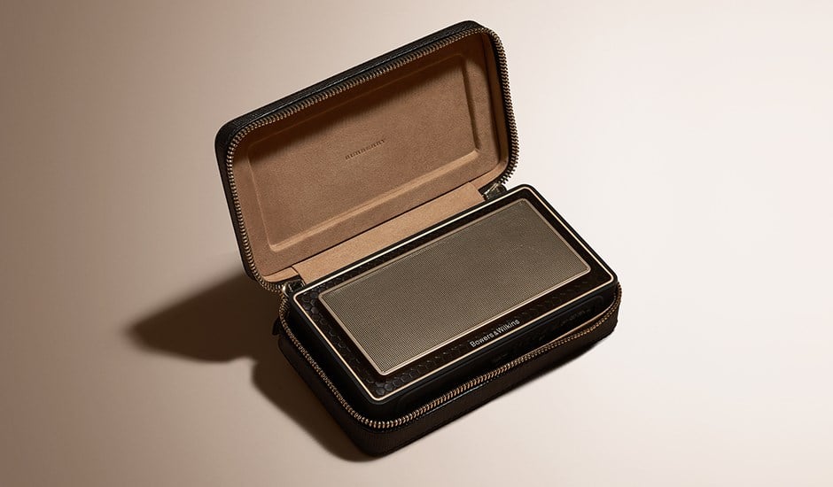 ในส่วนของที่ Burberry รับผิดชอบนั้น จะเป็นในส่วนของเคสหนังสำหรับใส่ลำโพงนี้ ทำให้พกพาได้ง่ายและสะดวกมากยิ่งขึ้น ซึ่งก็จะเป็นรุ่น Limited Edition ผลิตเพียงแค่ 200 ตัวเท่านั้น ซึ่งจะมีจำหน่ายผ่านทางร้านของ Burberry เฉพาะบางสาขาเท่านั้น และ ทางเว็บไซต์ของ Bowers & Wilkins