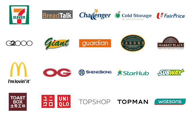 สามารถใช้งานได้ที่ร้านค้าที่รองรับการชำระเงินผ่าน NFC ได้ทั่วเกาะสิงคโปร์ ไม่ว่าจะเป็น 7-11, BreadTalk, Cold Storage, McDonald’s, NTUC FairPrice, StarHub, Toast Box, Uniqlo, Watsons และอื่น ๆ อีกมากมาย และการใช้จ่ายภายในแอป เช่น Deliveroo, Grab, Shopee, Singapore Airlines, Uber, และ Zalora