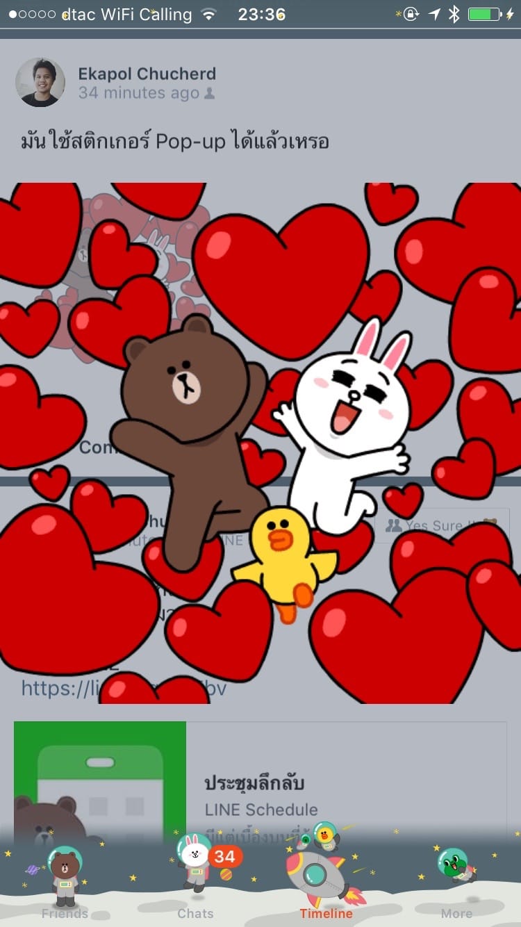นอกจากนี้หน้า Timeline ของไลน์เวอร์ชั่นใหม่ยังมีความสามารถในการเล่นวิดีโอที่โพสต์อัตโนมัติ แถมผู้ใช้ยังสามารถแปะ Pop-up สติกเกอร์ลงไปได้อีกด้วย