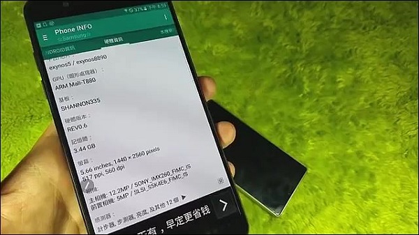 จากวิดีโอที่ปรากฏข้างต้นนั้น ยังแสดงให้เห็นรูปแบบการล็อคหน้าจอแบบเดียวกับที่ได้แสดงในตัวอย่างโฆษณาที่เผยแพร่ก่อนหน้านี้ พร้อมด้วยหน้าจอขนาด 5.66 นิ้ว, หน่วยประมวลผลกราาฟิค Mali-T880, แรม 4 GB, กล้องหลัง 12.2 ล้านพิกเซล เซ็นเซอร์ Sony IMX 260 และกล้องหน้า 5 ล้านพิกเซล เซ็นเซอร์ Samsung S5K4E6 ซึ่งสเปคดังกล่าวนั้นใกล้เคียงกับ Samsung Galaxy S7 และ S7 edge