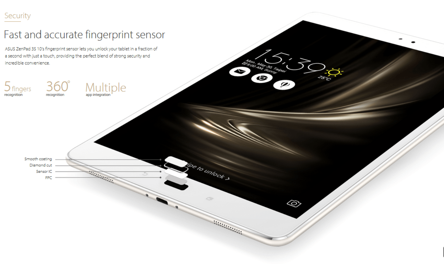 - ขอบหน้าจอบาง 5.32 มม เท่านั้น ทำให้ ZenPad 3S 10 มีพื้นที่ขนาดหน้าจอ 78% มากกว่า iPad Air 2 ที่ 71.65%
