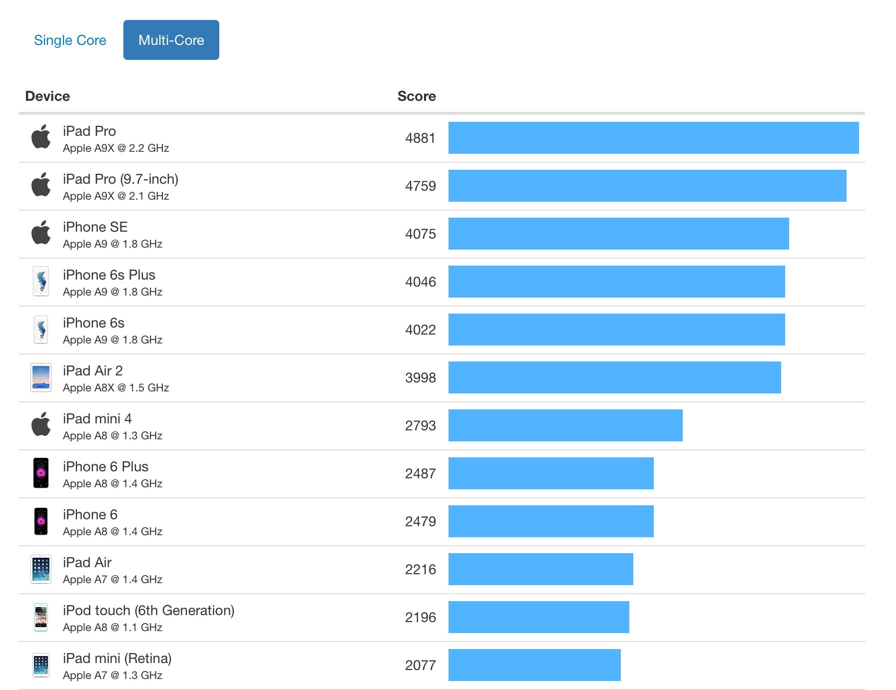 ซึ่งถ้าเทียบคะแนนในกลุ่ม Multi-Core แล้ว ก็ถือว่า iPhone 7 เป็นอุปกรณ์ iOS ที่แรงที่สุดตอนนี้ เหนือกว่า iPad Pro อีก