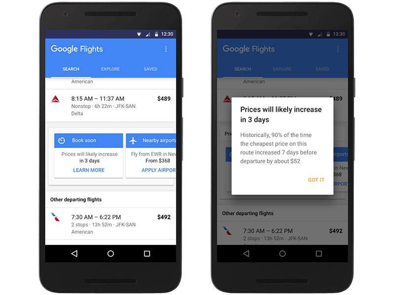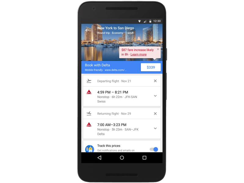 ล่าสุด Google Flights บริการหาตั๋วเครื่องบินจาก Google ได้เพิ่มฟีเจอร์ขึ้นใหม่ขึ้นมา คือฟีเจอร์การคาดเดาราคาล่วงหน้าว่า ราคาจะเพิ่มขึ้นหรือลดลงในเมื่อไร แล้วเวลาไหนจะเป็นเวลาที่ดีที่สุดในการจองถึงจะได้ราคาดีที่สุด