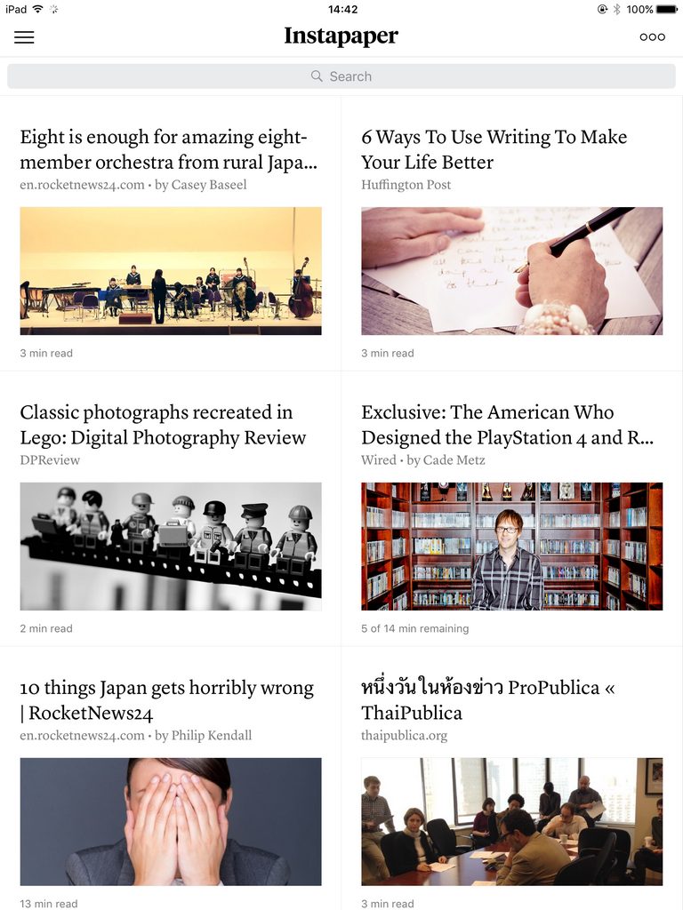 - หน้าเว็บ Instapaper แบบไม่มีโฆษณา