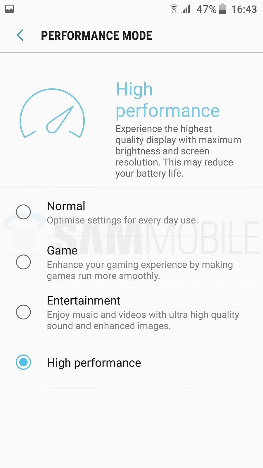 นอกจากนี้ก็ยังมีโหมดตัดแสงสีฟ้า (ซึ่งใส่ใน Galaxy Note 7 เช่นเดียวกัน) และยังเพิ่มลูกเล่นโหมดต่างๆ ให้เหมาะสมกับการใช้งานของผู้ใช้ ได้แก่ Normal, Game, Entertainment และ High Performance ขึ้นอยู่กับว่าอุปกรณ์กำลังถูกใช้ทำอะไรอยู่ครับ สุดท้ายคือฟีเจอร์ Always On Display หรือหน้าจอที่เปิดอยู่ตลอดเวลาจาก Galaxy Note 7 เช่นเดียวกัน