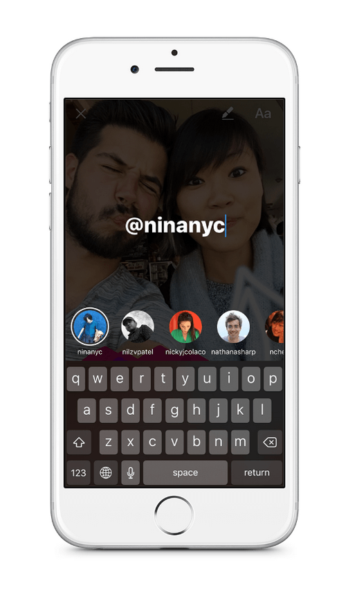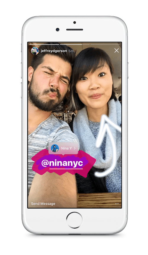 - อัพเดทที่สอง เราได้เพิ่ม เมนชั่น (@mentions) เพื่อให้คุณสามารถแบ่งปันเรื่องราวใดๆ ก็ตาม ให้คนที่คุณอยู่ด้วยหรือคนที่คุณกำลังนึกถึงได้อย่างง่ายดาย การกล่าวถึงผู้คนผ่านเมนชั่นบน Stories มีวิธีใช้งานเช่นเดียวกับส่วนคำบรรยายภาพ (captions) และความคิดเห็น (comments)