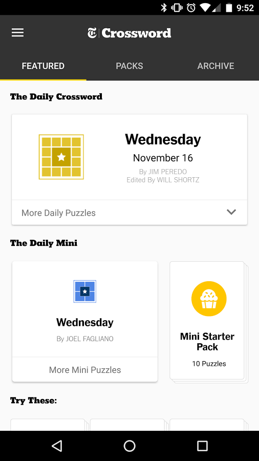 ในก่อนหน้านี้ NYTimes Crossword มีให้เล่นบน iOS และบนเว็บเท่านั้น แต่ในตอนนี้สามารถเล่นบน Android ได้แล้ว ซึ่งจะได้เล่นแค่ชุด Mini Puzzles เท่านั้น ถ้าอยากเล่นกันแบบจุใจทุก ๆ วันต้องซื้อ In-App เพิ่ม