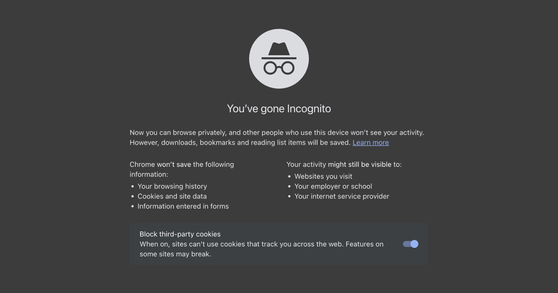 Google ถูกฟ้องร้องจนเป็นคดีตั้งแต่ปี 2020 ในข้อกล่าวหาว่า Chrome หรือเบราว์เซอร์ของ Google มีการติดตาม รวบรวม และระบุข้อมูลการท่องเว็บแบบเรียลไทม์แม้ว่าผู้ใช้งานจะเปิดโหมดไม่ระบุตัวตนหรือ Incognito Mode ก็ตาม