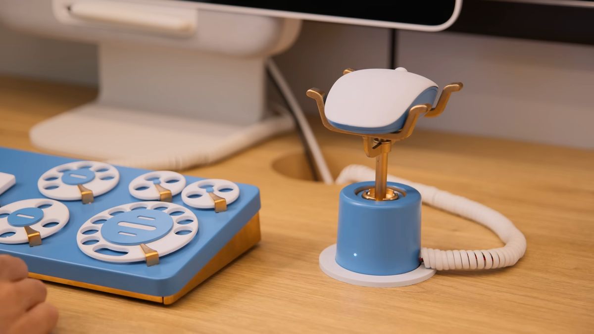 นอกจากตัวของคีย์บอร์ดแล้ว อุปกรณ์เข้าเซตอย่างขาตั้งเมาส์ก็ได้รับอิทธิพลจากยุคโทรศัพท์แบบหมุน เช่นเดียวกัน ทีมพัฒนาแนะนำว่าอุปกรณ์เสริมนี้สามารถใช้เพื่อควบคุมการนำเสนอในการประชุมทางวิดีโอได้อย่างเป็นธรรมชาติ การวางเมาส์บนขาตั้งนี้สามารถพักสายโทรเข้าได้ โดยสลับกล้องวิดีโอและไมโครโฟนในขณะที่พักการใช้งาน
