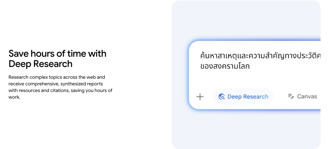- Deep Research: ตัวช่วยค้นคว้าข้อมูลแบบลงลึก ค้นคว้าแบบละเอียด (แอดเคยลองใช้มาแล้ว) มีแหล่งอ้างอิงน่าเชื่อถือ ประหยัดเวลาหาข้อมูลเองไปหลายชั่วโมง