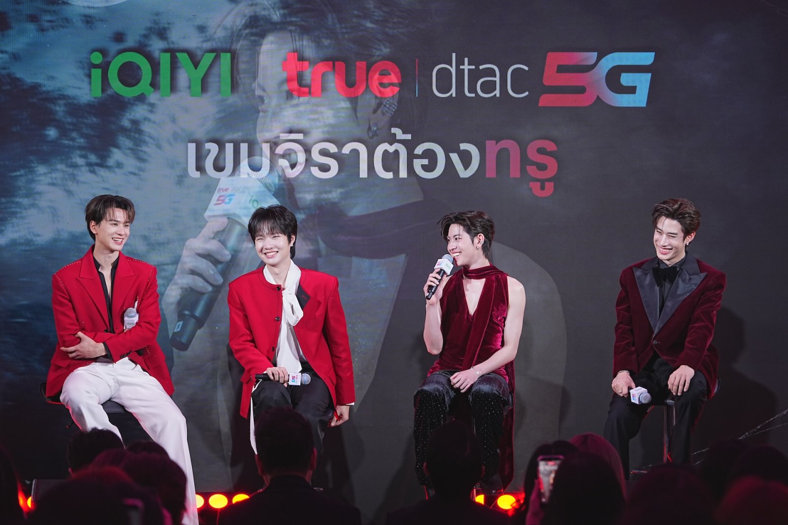 ภาพบรรยากาศแห่งความประทับใจ: ที่สุดแห่งมหกรรมความฟินแห่งปี! เมื่อสัญญาณใจเชื่อมถึงกัน บรรยากาศภายในงานเต็มไปด้วยพลังแห่งความสุข ทันทีที่ 4 หนุ่มปรากฏตัว เสียงกรี๊ดต้อนรับดังสนั่นตลอดงาน แฟนคลับผู้โชคดีซึ่งเป็นลูกค้าทรูและดีแทค ต่างได้สัมผัสประสบการณ์ที่หาซื้อไม่ได้จากที่ไหน ทั้งการพูดคุยอย่างเป็นกันเอง เกมสุดฟิน และโชว์พิเศษที่ทำเอาแฟนๆ “ใจละลาย” ฟินกันถ้วนหน้า สะท้อนภาพความสำเร็จของการเป็นแบรนด์ที่เข้าใจไลฟ์สไตล์ลูกค้าอย่างแท้จริง มอบความบันเทิงและสิทธิพิเศษที่คัดสรรมาอย่างดีที่สุด