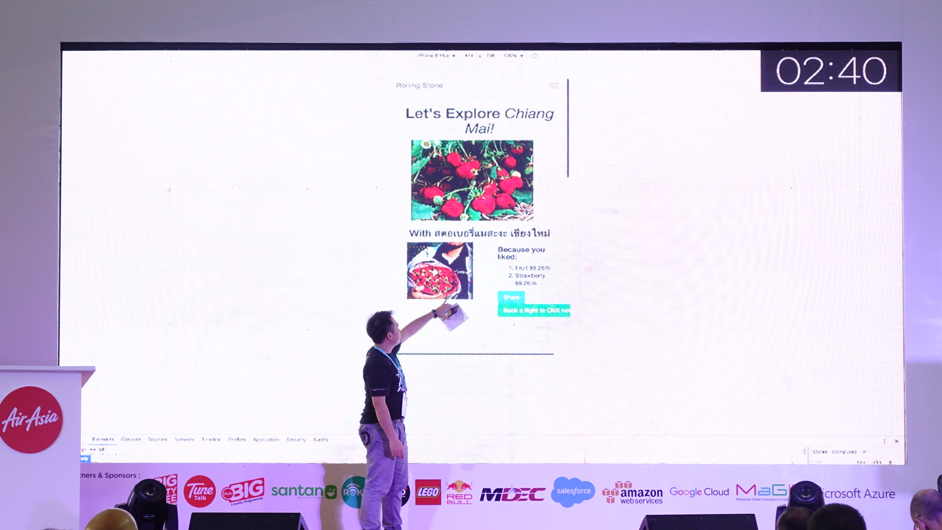ตัวแทนจากประเทศไทยได้ออกแบบให้ Machine Learning เรียนรู้จากภาพถ่ายที่ปรากฎใน Instagram ของเซเลบ หรือดาราที่โพสต์รูปดังกล่าว แล้ววิเคราะห์ ประมวลผล และแสดงผลออกมาว่า ภาพถ่ายที่ปรากฎนี้ อยู่ในประเทศใด จังหวัดใด พร้อมทั้งข้อมูลเพิ่มเติม สามารถแชร์ภาพและข้อมูลลงโซเชียลมีเดียที่ตัวเองใช้งานได้ หรือถ้าต้องการที่จะเดินทาง ก็สามารถกดจองตั๋วเครื่องบิน กำหนดวันเดินทางทั้งขาไปและขากลับ เพื่อไปยังที่แห่งนั้นได้ทั้งที