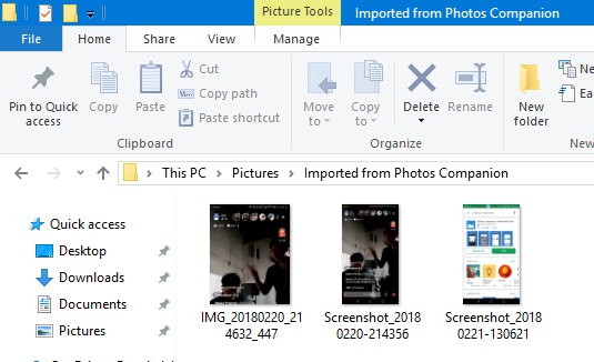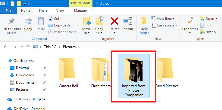 - ภาพที่ส่งเสร็จ จะปรากฎใน App “Photos” และจะไปอยู่ที่โฟล์เดอร์ “Picture” และอยู่ในโฟลเดอร์ย่อย “Imported from Photos Companion”