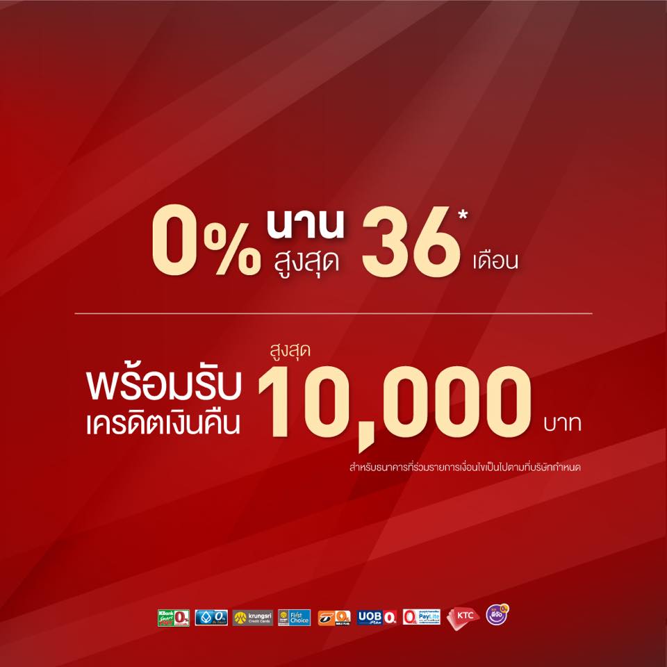 + ผ่อน 0% สูงสุด 36 เดือน พร้อมรับเครดิตเงินคืนสูงสุด 10,000 บาท กับบัตรที่ร่วมรายการ