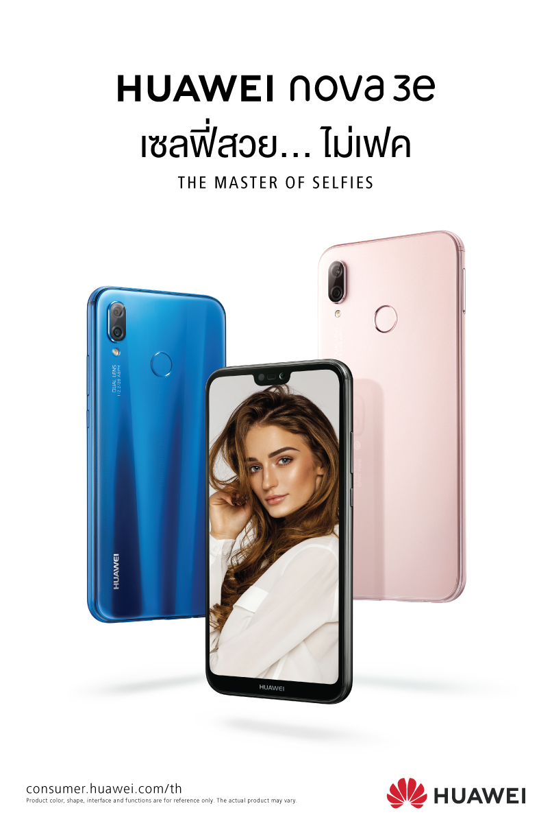 หัวเว่ยเผยข้อมูลสมาร์ทโฟนรุ่นล่าสุด “HUAWEI nova3e” สมาร์ทโฟนเพื่อการถ่ายภาพเซลฟี่สวยอย่างเป็นธรรมชาติ ด้วยกล้องหน้าที่มีความละเอียดถึง 24 ล้านพิกเซล โดยมาพร้อมกล้องหลังคู่ขนาด 16 ล้านพิกเซลและ 2 ล้านพิกเซล เพื่อเพิ่มลูกเล่นสำหรับการถ่ายภาพหน้าชัดหลังเบลอ แถมยังจุใจด้วยสเปคการใช้งานที่จัดเต็มเหนือใคร พร้อมเปิดตัวอย่างเป็นทางการในวันที่ 10 พฤษภาคมนี้!