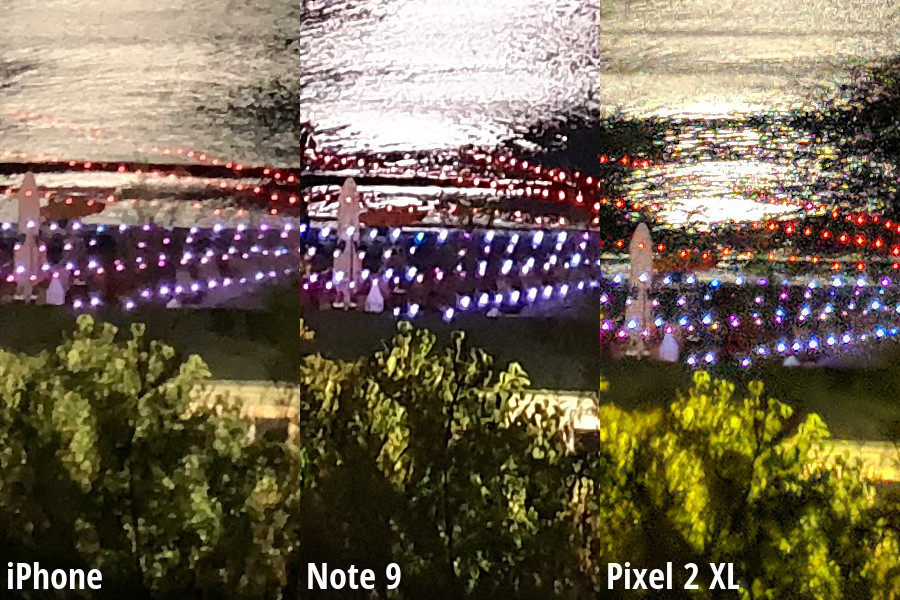 แต่ในขณะเดียวกัน Galaxy Note 9 และ Pixel 2 XL ก็ยังมีบางส่วนของภาพที่มืดเกินไป