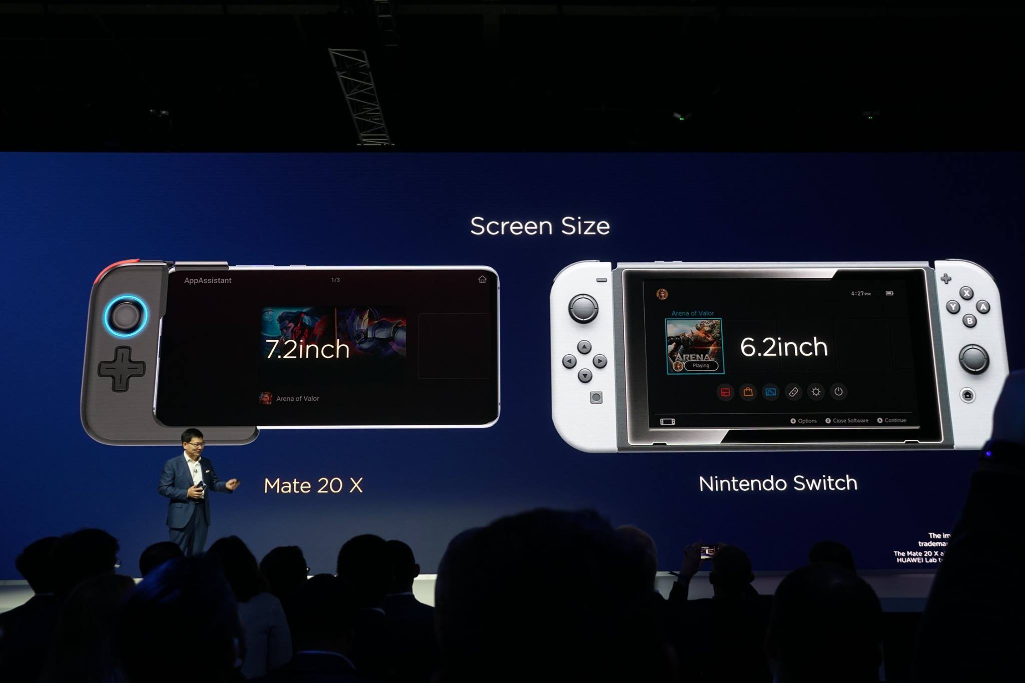 หนึ่งในไฮไลต์การเปิดตัวสมาร์ทโฟนเรือธงของ Huawei ก็คือ Huawei Mate 20 X สมาร์ทโฟนรุ่นพิเศษจอ OLED ใหญ่สะใจ 7.2 นิ้ว ซึ่งทาง Huawei ระบุว่าเป็นสมาร์ทโฟนที่ออกแบบมาเพื่ออรรถรสในการเล่นเกมเป็นหลัก โดย Richard Yu ซีอีโอ Huawei ได้หยิบยกเครื่องเกมพกพาเจ้าตลาดอย่าง Nintendo Switch มาเทียบสเป็กกัน พร้อมสรุปว่า Mate 20 X คือ เครื่องเกมพกพาที่ดีที่สุด เวลานี้