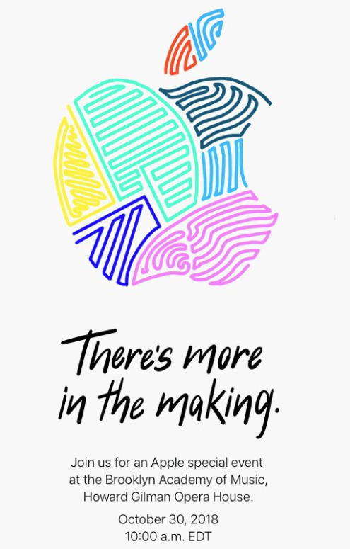 Apple เตรียมจัดอีเวนท์ในวันที่ 30 ตุลาคม 2018 นี้ ณ Brooklyn Academy of Music ที่กรุงนิวยอร์ก ประเทศสหรัฐอเมริกา โดยทาง Apple ได้ปล่อยภาพทีเซอร์เชิญร่วมงาน ดังที่ปรากฏด้านล่างนี้