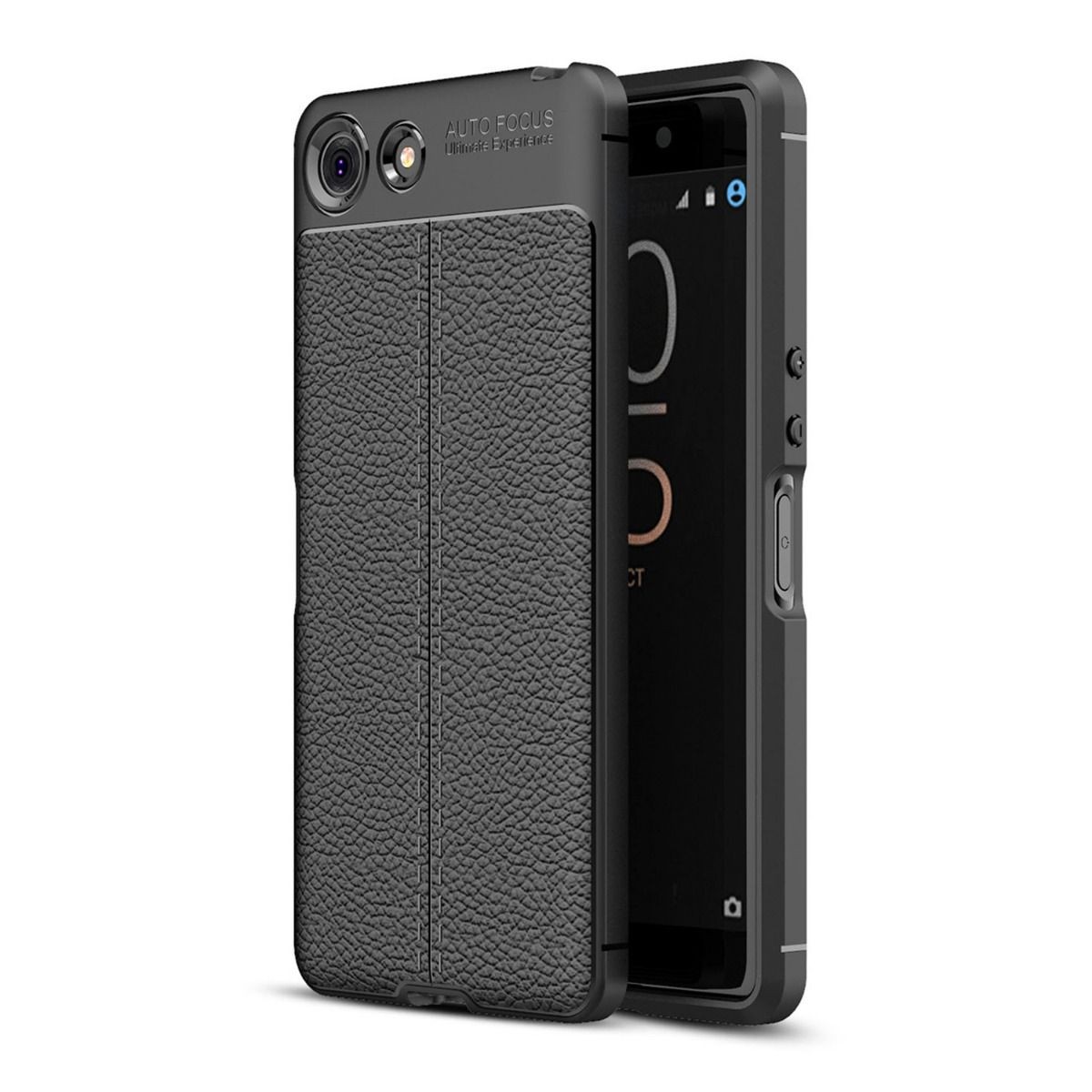 ภาพเรนเดอร์เคส Xperia XZ4 Compact เผยให้เห็นกล้องหลัง 1 ตัว, ขอบเครื่องหนา, เซ็นเซอร์สแกนนิ้วด้านข้างหน้าจอ และช่องเสียบหูฟัง 3.5 มม.