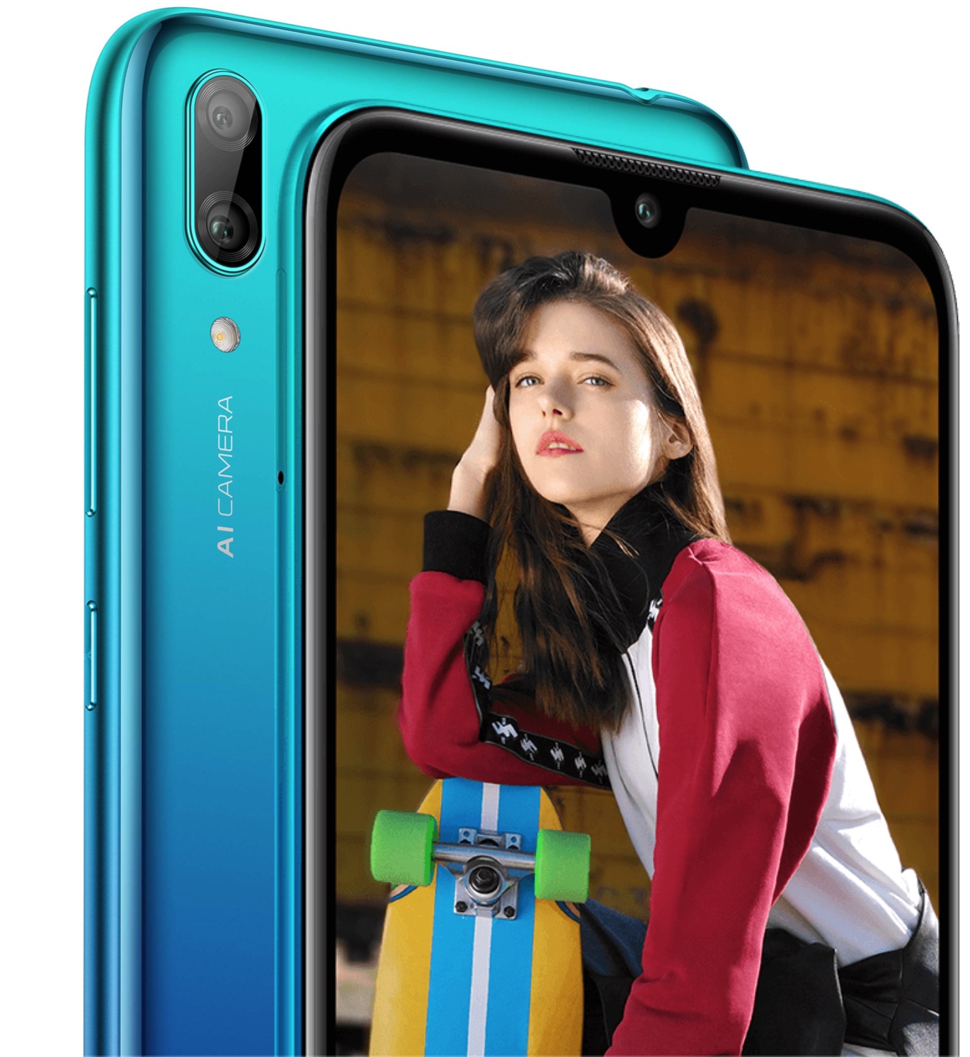 HUAWEI Y7 Pro 2019” สมาร์ทโฟนจากกลุ่ม Y Series ยกเครื่องใหม่หมดจด เริ่มจาก “กล้องหลังคู่ AI” (AI Dual Camera) ขนาด 13 ล้านพิกเซลและ 2 ล้านพิกเซล ที่นอกจากจะมีลูกเล่นสำหรับการถ่ายภาพหน้าชัดหลังเบลอแล้ว ยังมี Master AI ช่วยให้ถ่ายภาพได้สวยในทุกสถานการณ์ แถมกล้องหน้าความละเอียด 16 ล้านพิกเซล และ “หน้าจอ” ดีไซน์ไร้ขอบแบบหยดน้ำระดับสมาร์ทโฟนเรือธง ขนาดจอ 6.26” ใหญ่เต็มตา ความละเอียด 1520 x 720 pixel (720p) มาพร้อม “แบตเตอรี่” ความจุมากถึง 4,000 mAh ใช้งานได้ยาวนานมากยิ่งขึ้น แถม “สเปคแรง” ด้วยชิป Snapdragon 450 แรม 3 GB รอม 32 GB จัดเต็มด้วยการรองรับเมมโมรี่การ์ดสูงถึง 512 GB มาพร้อม EMUI 8.2 บน Android 8