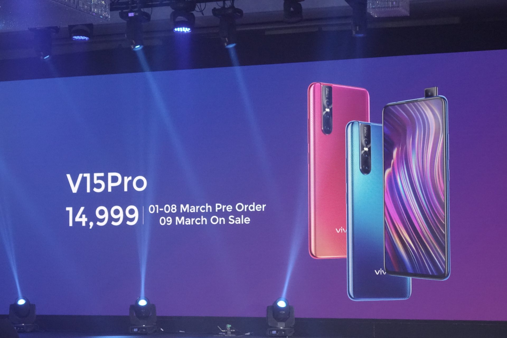 วีโว่ประเทศไทยได้ฤกษ์เปิดตัว VIVO V15 และ V15Pro ชูจุดเด่นที่มีกล้องหน้าแบบป๊อปอัป กล้องหลังสามตัว หน้าจอไร้ขอบ มาพร้อมระบบ AI ในการปรับแต่งภาพได้อย่างใจนึก