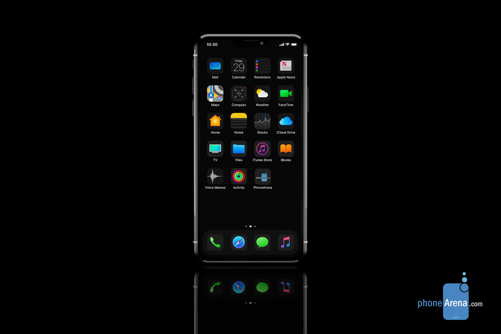 เว็บไซต์ PhoneArena ได้นำเสนอภาพเรนเดอร์ iPhone XI (11) พร้อมระบบปฏิบัติการ iOS 13 ใน Dark Mode ที่สวงาม ซึ่งเป็นผลดีมาจากเทคโนโลยีแผงหน้าจอ OLED ที่สอดคล้องกับการแสดงผลอย่างเต็มประสิทธิภาพ