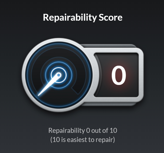 ด้วยเหตุนี้ iFixit จึงให้คะแนนการซ่อมแซม 0/10 นั่นหมายความว่าไม่สามารถซ่อมแซมได้นั่นเอง