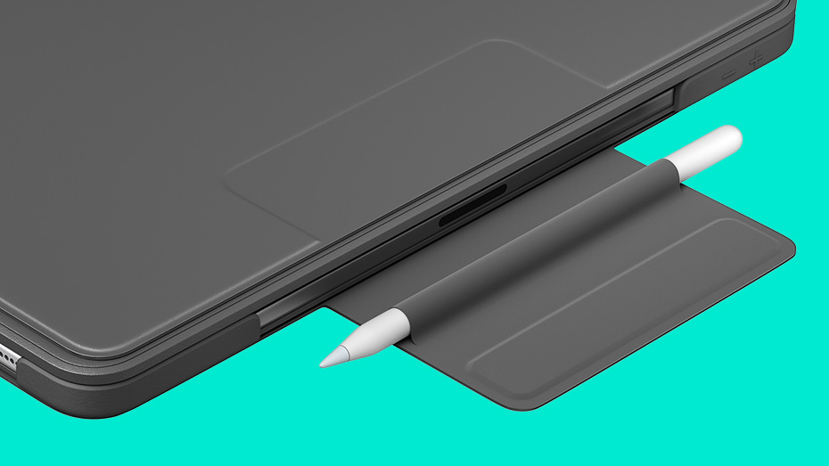 ยิ่งไปกว่านั้น เคสคีย์บอร์ดตัวนี้ยังได้ออกแบบมาใช้กับ Apple Pencil รุ่นที่ 2 หลาย ๆ คนคงน่าจะกลัวที่เก็บ Apple Pencil ด้วยการดูดแม่เหล็กกับตัว iPad โดยตรงแล้วจะหลุด จะหล่น จึงมีที่เก็บ Apple Pencil มาให้ด้วย ซึ่งตรงกับที่ชาร์จพอดีด้วย