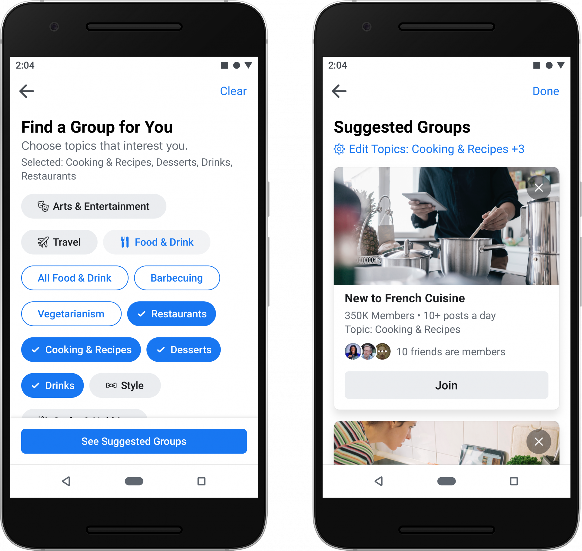 ปรับเปลี่ยนการแสดงผลของแท็บ “Group” ให้หาได้ง่ายขึ้น โดยแท็บนี้เองจะเป็นการแสดงฟีดของกลุ่มทั้งหมดของผู้ใช้โดยจะปรับตามความสนใจของผู้ใช้งาน และเพิ่มฟีเจอร์ใหม่สำหรับกลุ่มเฉพาะทาง เช่น การถามข้อมูลสุขภาพนั้นสามารถโพสต์ถามได้แบบไม่ระบุตัวตน มีเทมเพลตให้สำหรับโพสต์รับสมัครงาน เป็นต้น
