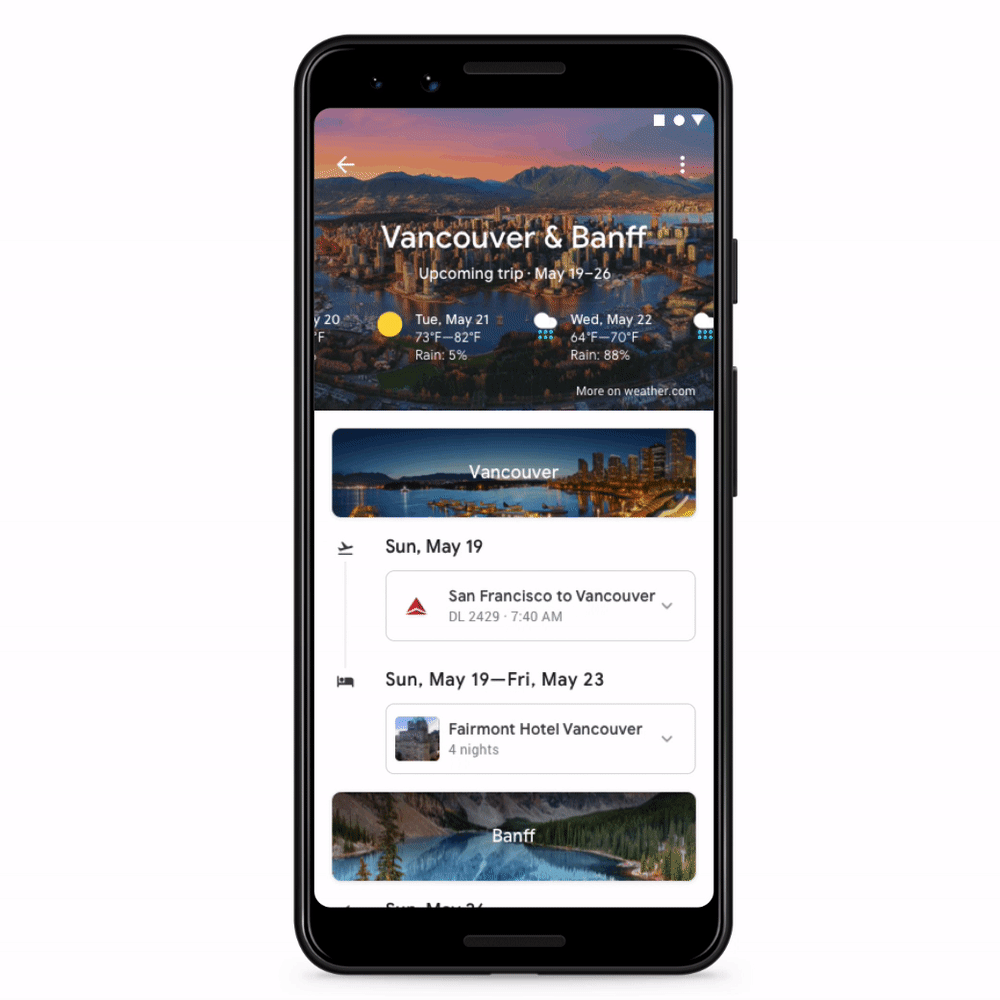 อีกทั้งยังสามารถวางแผนเที่ยวสถานที่ท่องเที่ยวต่าง ๆ โดยจะรวมฟีเจอร์ Google Maps เข้ามาในการแนะนำสถานที่ ร้านอาหาร หรือกิจกรรมที่น่าสนใจด้วย