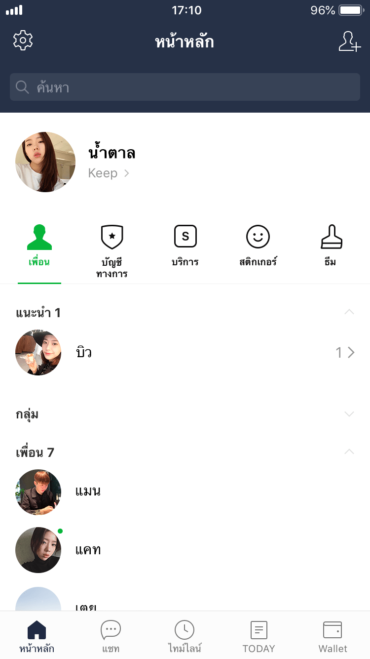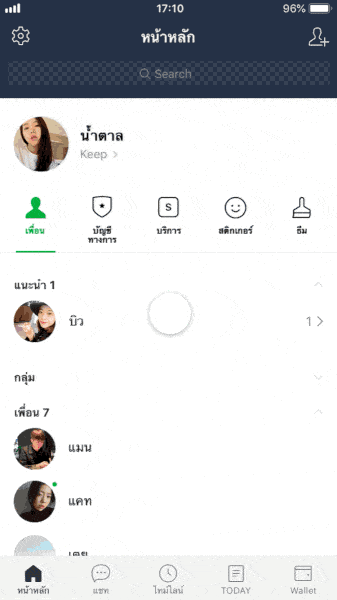 โดยหลังจาก LINE เปลี่ยนแท็บแรกจาก Friend มาเป็น Home แล้ว หน้าตาจะดูสะอาดตาขึ้นแบบนี้ครับ ด้านบนสุดก็ยังเป็นหน้าเราเพื่อกดเข้าไปจัดการโปรไฟล์ส่วนตัวและเข้า LINE Keep ที่เก็บไฟล์ส่วนตัวของเราได้เหมือนเดิม แต่ถัดลงมาจะมี 5 แท็บย่อยใหม่คือ