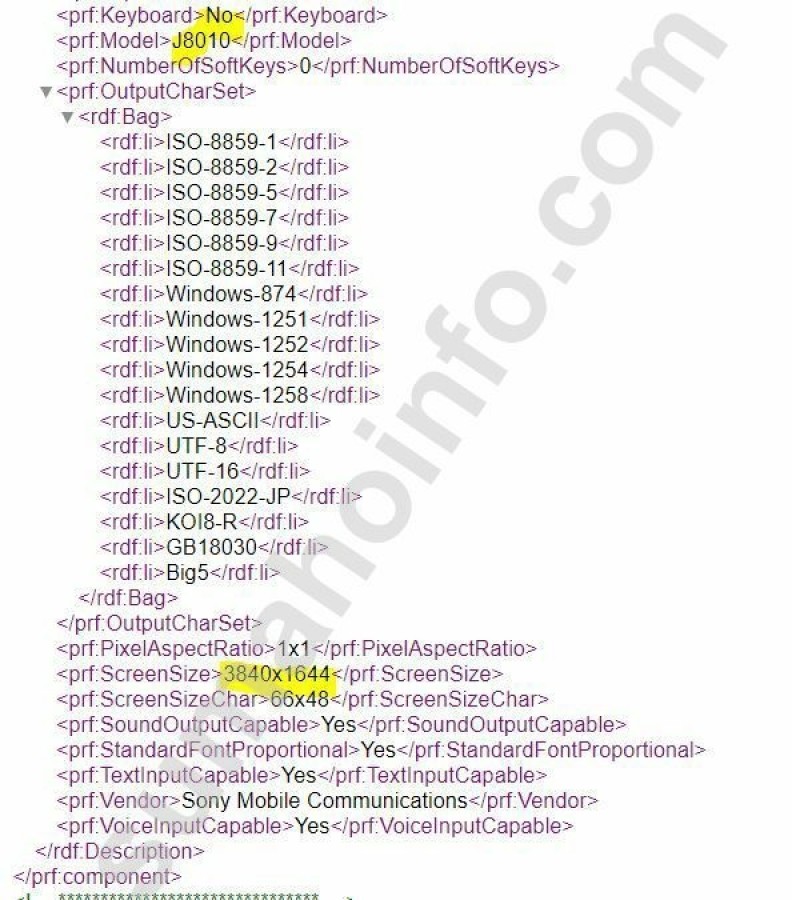 ไฟล์ดังกล่าวแสดงให้เห็นความเป็นไปได้ว่า J8210 จะเป็นรุ่นต่อเนื่องจาก Xperia 1 ของ Sony ที่มีหมายเลยรุ่น J8110 ซึ่งคาดว่จะใช้ชื่อรุ่นว่า Xperia 2