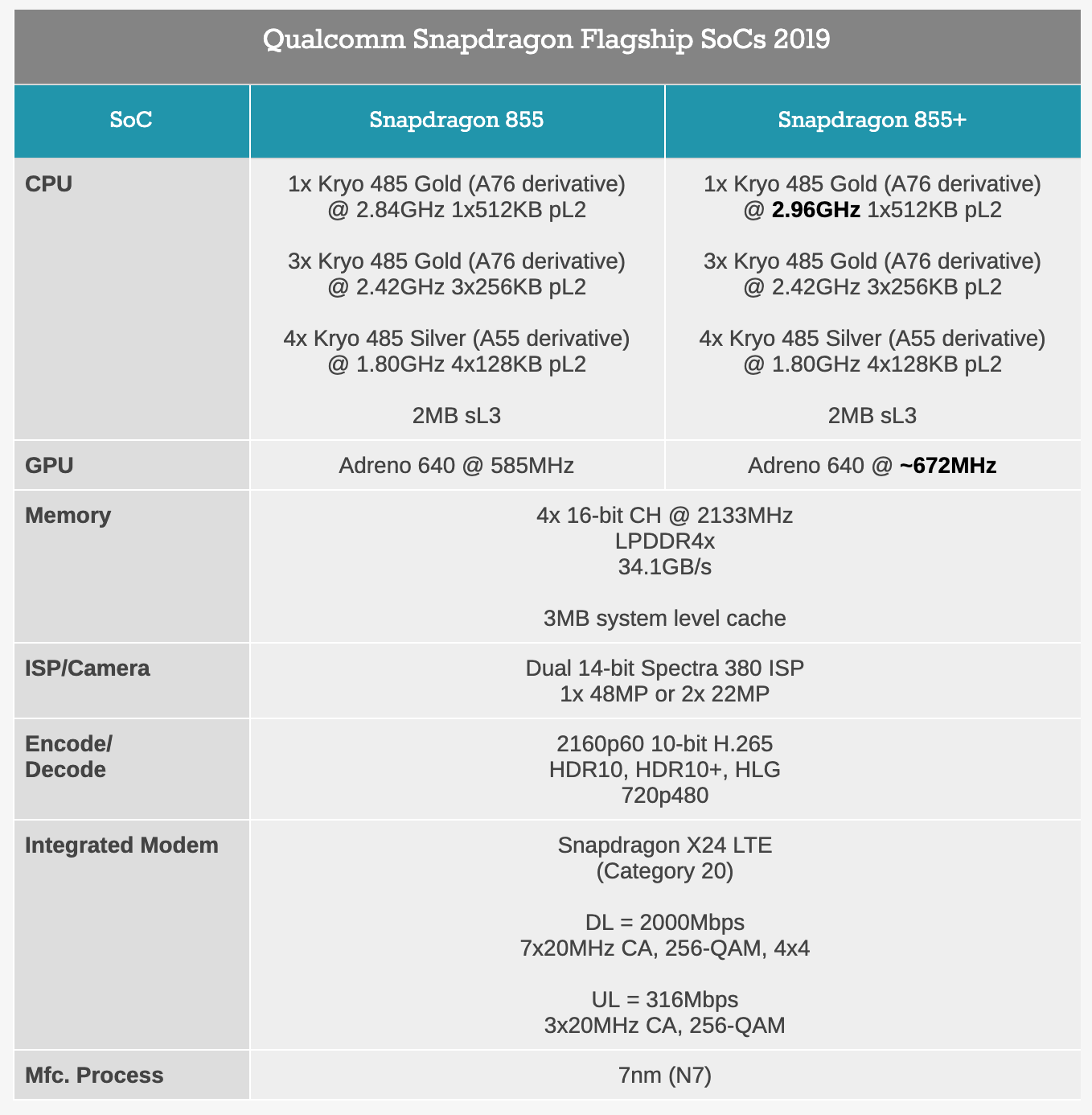- Qualcomm® Kryo ™ 485 CPU Prime Core ถูกโอเวอร์คล็อกได้ถึง 2.96GHz เพื่อประสิทธิภาพการทำงานระดับโลก และ Adreno 640 ที่เพิ่มประสิทธิภาพกราฟิกได้เร็วกว่าเดิม 15%