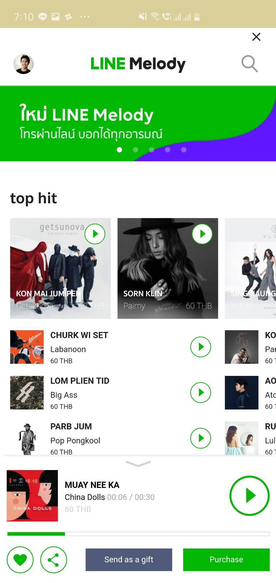 บริการเสียงรอสายที่ทุกคนรู้จักบุก LINE แอปสื่อสารยอดนิยมของไทย โดยคราวนี้จับมือกับทาง GMM Grammy นำพาเหรดเพลง จากหลากหลายศิลปินทั่วฟ้าเมืองไทย เช่น พี่เบิร์ด ธงไชย ปาล์มมี่ และ บอดี้แสลม มาจำหน่ายบน LINE Melody ในราคาเพียง 60 บาทเท่านั้น อีกทั้งยังได้จัดเป็นหมวดหมู่ศิลปิน แนวเพลง และ อารมณ์เพลง ให้อีกด้วย
