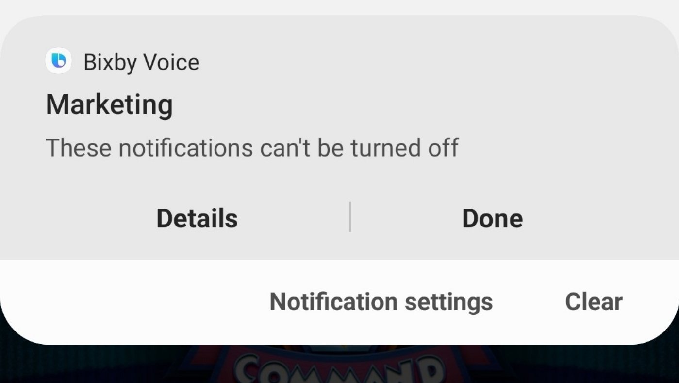 ถึงอย่างไรก็ตามถึงใน Bixby จะมีให้เปิดปิดรับการแจ้งเตือนประเภทต่าง ๆ ได้ แต่สำหรับการแจ้งเตือนโฆษณาหรือการตลาดจากทาง Samsung นั้น ถูกล็อกไว้ ไม่สามารถปิดได้
