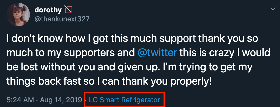 ส่วนทางด้าน Taryn Brucha โฆษกหญิงของ LG กล่าวถึงความเป็นไปได้จากการทวิตผ่านตู้เย็นว่า “เราไม่รู้ว่า Dorothy ใช้ตู้เย็นอัจฉริยะของ LG ในการทวิตข้อความดังกล่าวจริงหรือไม่ แต่ทางเทคนิคแล้วตู้เย็นของเราสามารถทำการเชื่อมต่อ WiFi และมีความเป็นไปได้ที่จะเข้าถึงแอป Twitter ในตู้เย็นอัจฉริยะบางรุ่น”