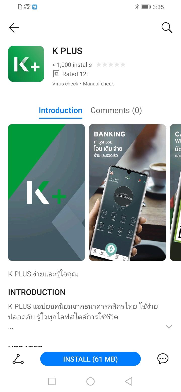 สำหรับผู้ใช้งาน Huawei สามารถติดตั้งแอป K-Bank ผ่าน AppGallery ได้ง่าย ๆ โดยเข้าแอป AppGallery