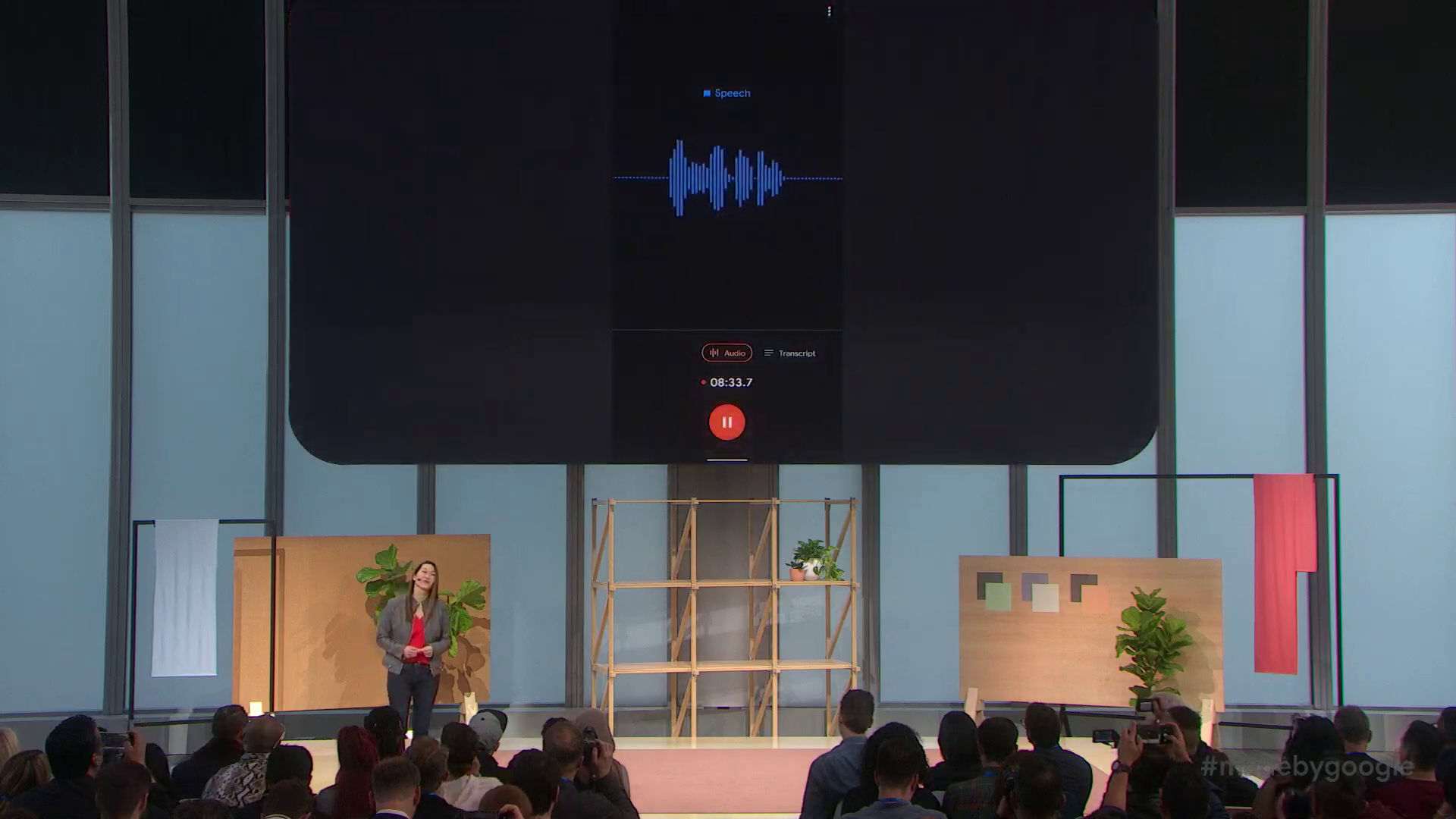 บนเวทีตอนเปิดตัว มีการสาธิตการใช้งานของแอปดังกล่าว ซึ่งสามารถแปลงเสียงเป็นข้อความได้แบบ Real Time เมื่อบันทึกแล้ว สามารถค้นหาคำที่พูดในไฟล์เสียงได้ พร้อมกับมาร์กช่วงเวลาดังกล่าวในไฟล์เสียง ที่จะทำให้กลับไปทบทวนได้ง่ายดาย