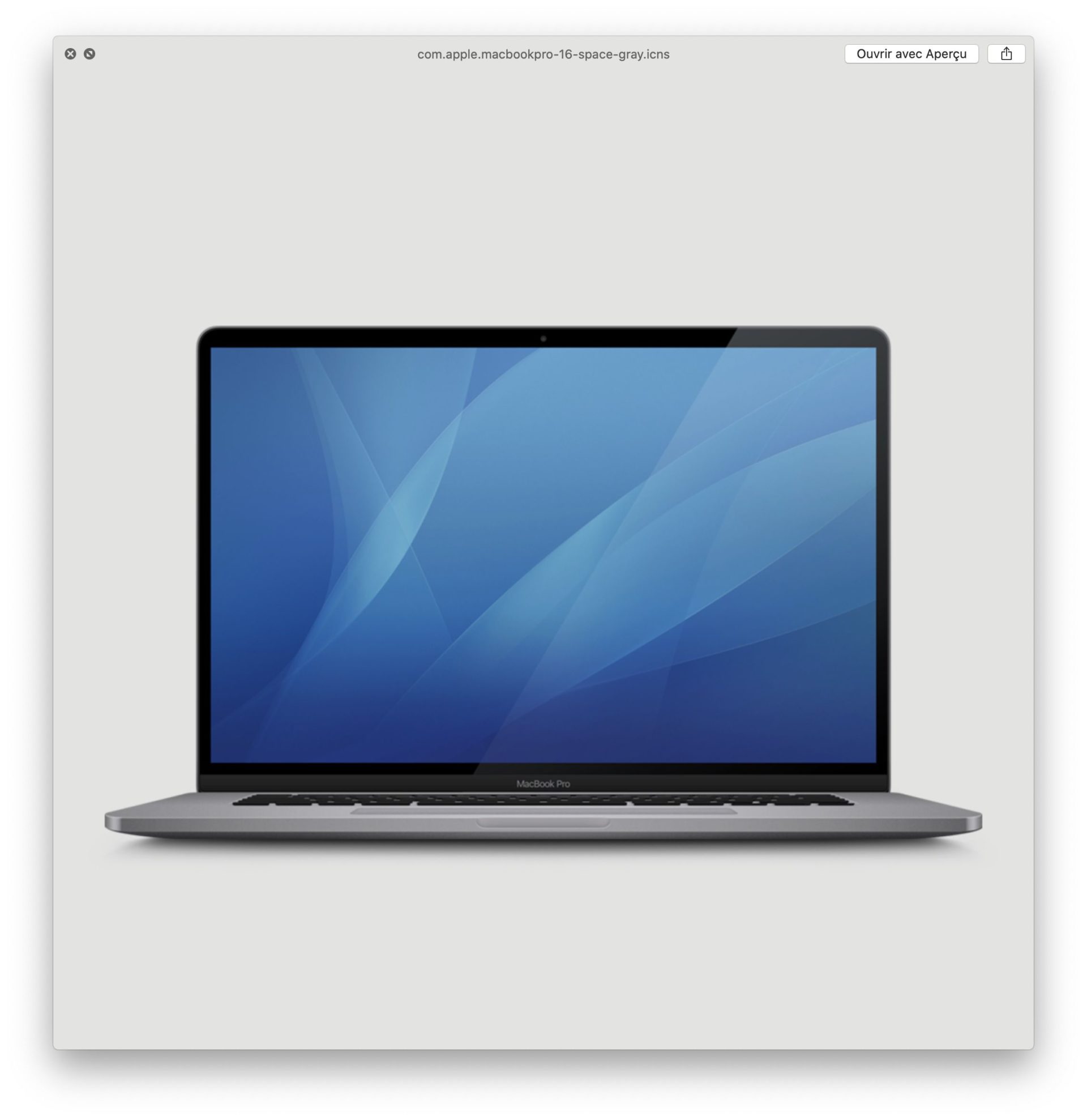 ไอคอนบน macOS Catalina เผยให้เห็นถึง Macbook Pro 16 นิ้ว ถึง 2 สีด้วยกัน สีเงิน Silver และสีเทา Space Gray โดยจะมีขอบที่บางลงกว่า MacBook Pro 15 นิ้ว รุ่นปัจจุบัน